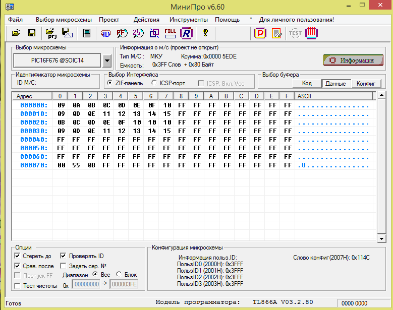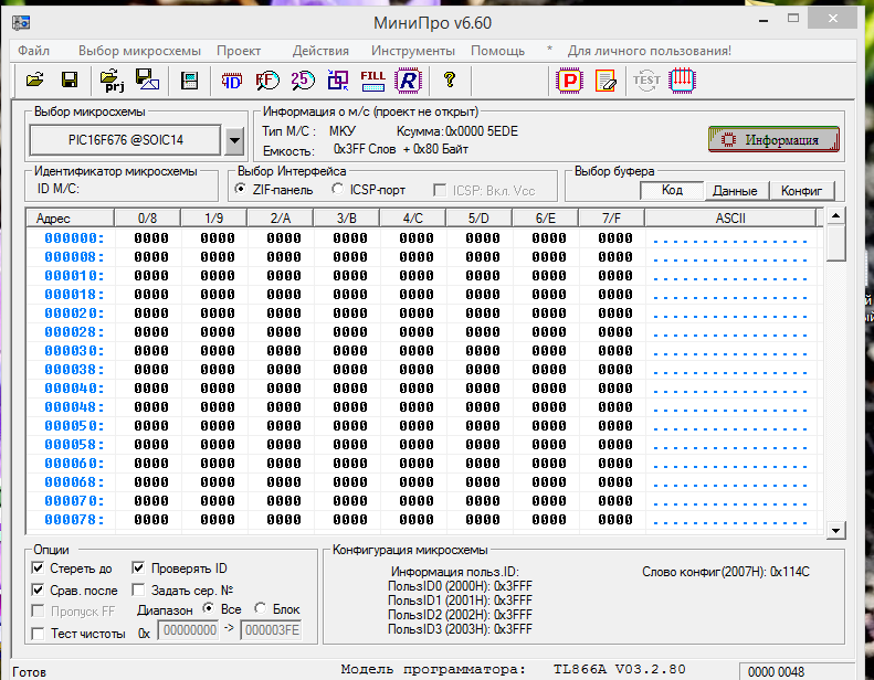 Выбрать тип файла Дамп под программатор PIC16F676 0.png 1 MB · View: 84 1.png 1.2 MB · View: 79 2.png 798.7 KB · View: 79 code.png 65 KB · View: 76 config.png 49 KB · View: 83 data.png 39.7 KB · View: 85
