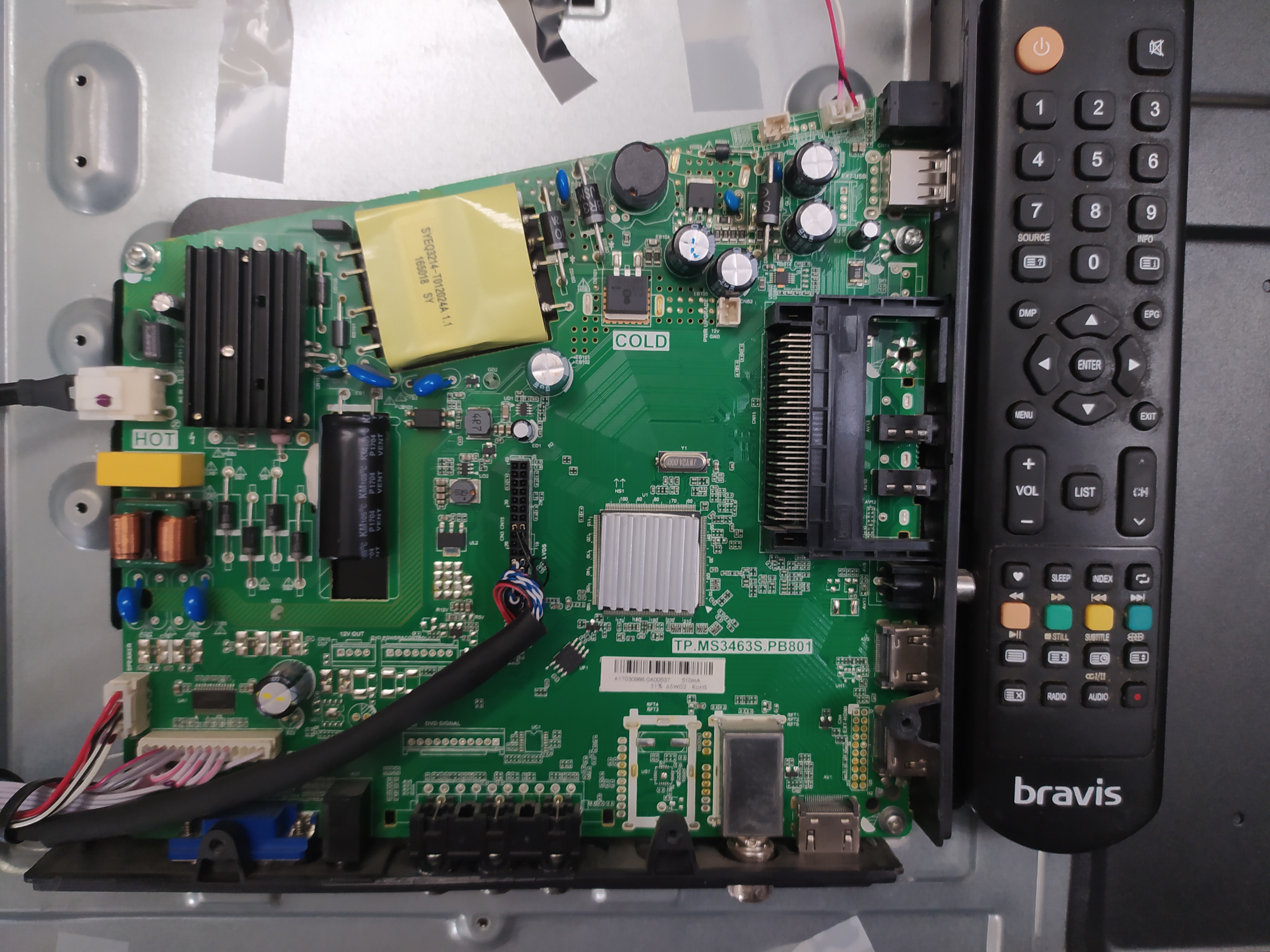Прошивка снята с рабочего телевизора программатором RT809H, после ремонта подсветки ,контрольная сумма дампа BE29 ,в данной модели применено шасси TP.MS3463S.PB801, но могут встречаться и другие у брависов и не только это норма